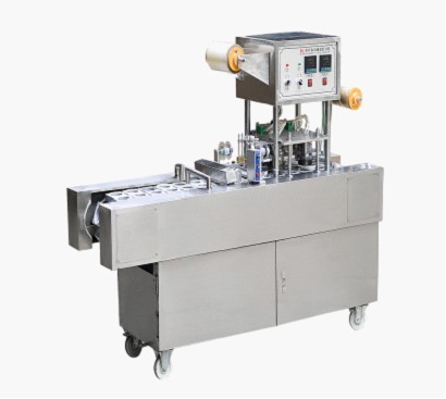 BG32系列小型全自動豆?jié){灌裝封口機(jī)用于100-500ml果奶,牛奶,果汁,豆?jié){等塑杯自動灌裝與封口,自動切膜省去人工,氣動切膜制蓋,卷廢邊完成自動化,符合食品衛(wèi)生要求,整機(jī)設(shè)計精密,小杯口灌裝定位準(zhǔn)確,兩次連續(xù)灌裝定量準(zhǔn)確減少泡沫,兩次熱封裝置,封口嚴(yán)密,質(zhì)量保證,是最實惠的小型自動切膜灌裝封口機(jī)。