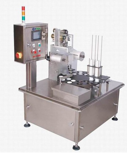 BG系列圓盤機(jī)功能齊全之最小型全自動(dòng)化機(jī)種,佔(zhàn)用空間小。落杯→無(wú)杯檢出→充填→電眼校正封膜位置→印字→封口&杯蓋裁切→成品整列排出一貫作業(yè)。傳統(tǒng)式操作面板,簡(jiǎn)單易懂。封口模獨(dú)立溫控回授控制。電眼自動(dòng)追蹤校正封口位置,薄膜印刷對(duì)位精確。全機(jī)採(cǎi)用不銹鋼及鋁合金制作,堅(jiān)固平穩(wěn),永不生銹。充填定量精確,儲(chǔ)料桶液位控制自動(dòng)供料。CIP自動(dòng)清洗料桶及充填管路。全部管路符合食品級(jí)衛(wèi)生規(guī)范。無(wú)杯檢出自動(dòng)停機(jī),補(bǔ)入自動(dòng)啟動(dòng)。成品自動(dòng)整列輸出。